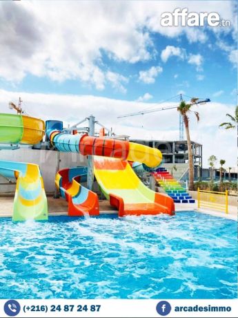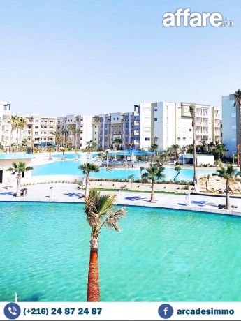 Agence Les Arcades met en location 🔑 pour vacances un magnifique appartement 🔝🌟de type s+2 , situé dans une superbe résidence avec 5 piscines dans la deuxième zone touristique de Monastir .