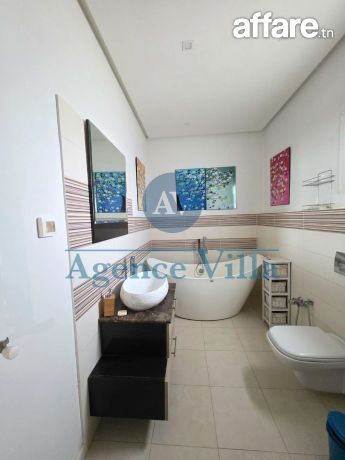 À louer, beau duplex meublé situé à seulement 50 mètres de l’autoroute express de Gammarth, dans un quartier calme et accessible.