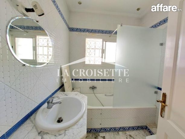 La Croisette Immobilière Tunisie vous propose à la location un étage de villa totalement indépendant S+2 située dans un quartier résidentiel à La Marsa.