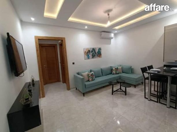 L’appartement se compose d’un salon, une cuisine ouverte bien équipée, un balcon, une chambre à coucher et une salle de bain.