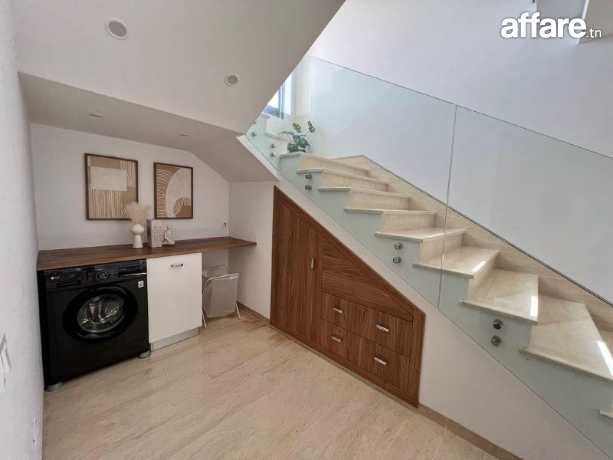 Au rez de chaussée, on trouve un grand salon, une cuisine moderne bien équipée, une suite, une chambre à coucger et une salle de bain.