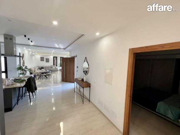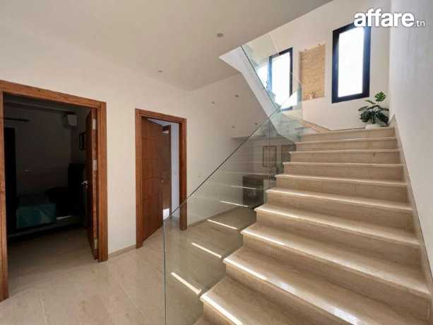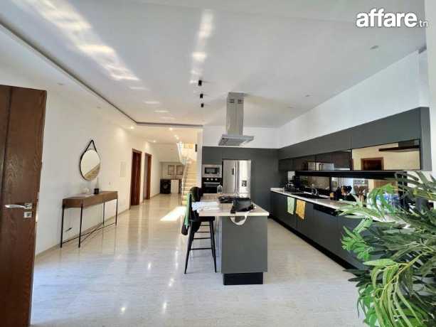 Au rez de chaussée, on trouve un grand salon, une cuisine moderne bien équipée, une suite, une chambre à coucger et une salle de bain.