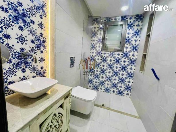 Le rez de chaussée se compose d’un grand salon, une cuisine moderne bien équipée, une suite, une chambre à coucher et une salle d’eau d’invités.