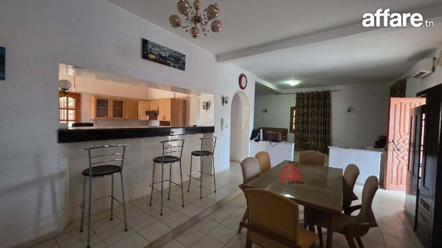 La villa se compose au rez-de-chaussée d'un espace de vie spacieux comprenant un salon climatisé, une salle à manger et une cuisine ouverte ainsi qu'une chambre.