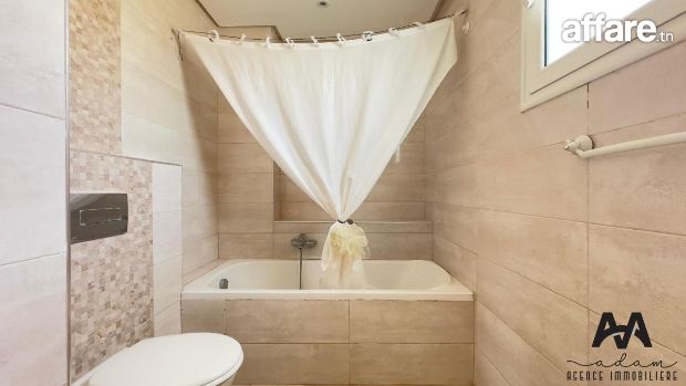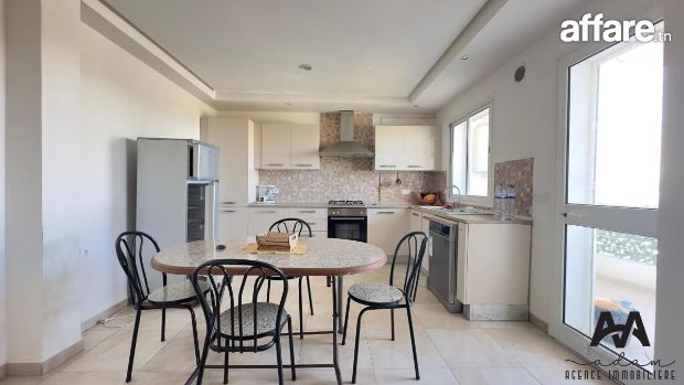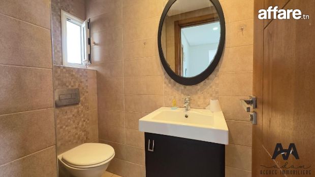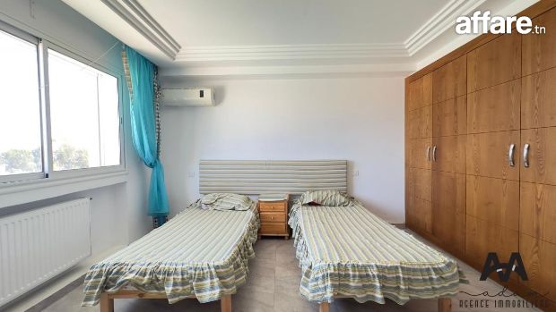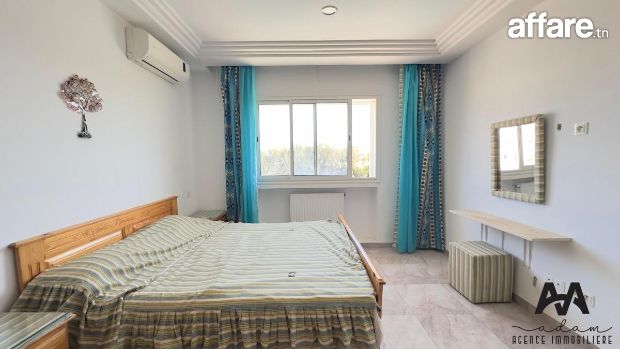ADAM Agence Immobilière vous propose à la location un bel appartement S+2 meublé, situé au 1er étage d’une résidence sécurisée avec piscine collective, idéalement implanté à Mrezga, proche des commodités et à quelques minutes de la plage.