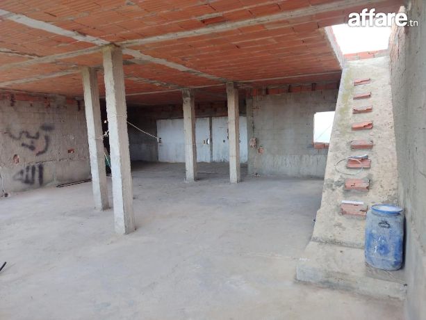 a vendre une maison (s+2) et cuisine et séchoir et salle d'eau et un studio (s+1) avec garage et un étage inachevée prés de jinen hammamet