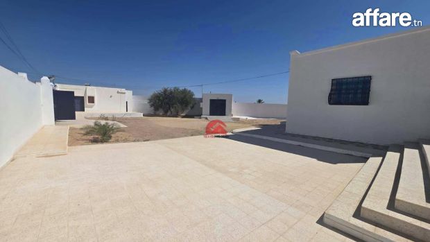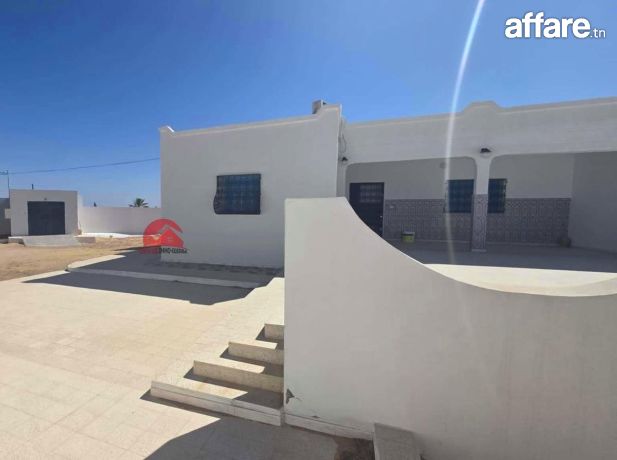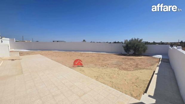 A vendre une maison récente de plain pieds qui couvre 201 m², implantée sur un terrain avec titre bleu individuel de 1782 m² à Houmt Souk Riadh Djerba.