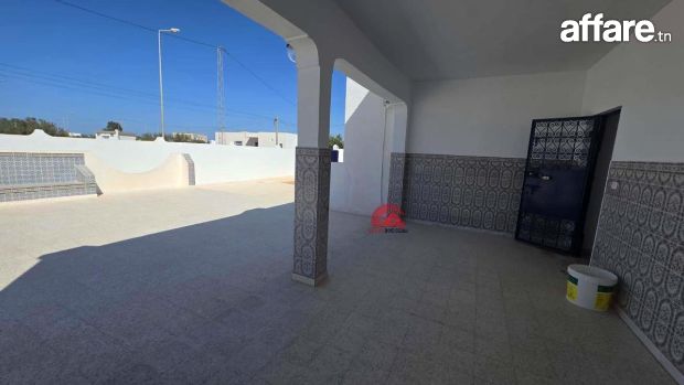 A vendre une maison récente de plain pieds qui couvre 201 m², implantée sur un terrain avec titre bleu individuel de 1782 m² à Houmt Souk Riadh Djerba.