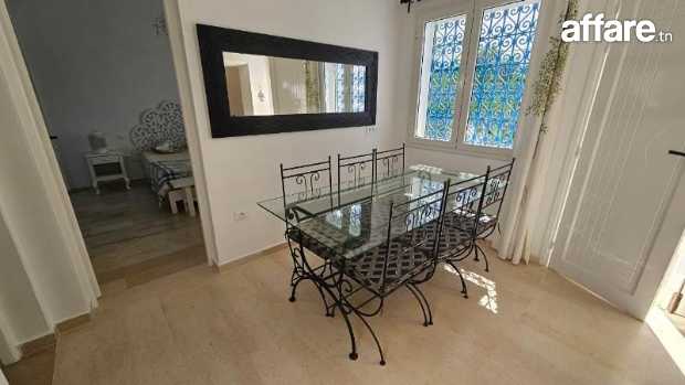 A vendre chez l'agence TPS Immobilière à Hammamet, une maison meublée de plain-pied de style arabesque très bien orienté, situé à Hammamet à la zone corniche dans un quartier résidentiel et proche de toutes les commodités.