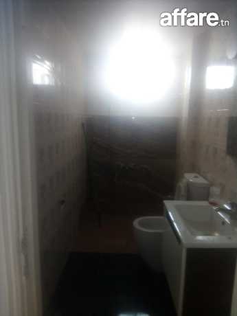 amino's immo louer à menzah 9c pas loin des immeubles gloulou, un rez-de-chaussée d'une villa indépendant vide composé d'un salon, deux chambres à coucher chacune dispose d'un dressing mural, cuisine aménagée, salle d'eau et terrasse.