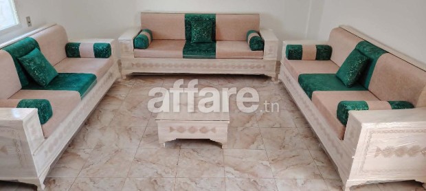 - un salon de 9 places composé de 3 banc avec table basse à 1500 DT