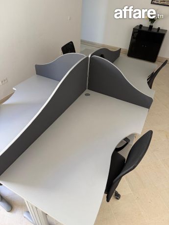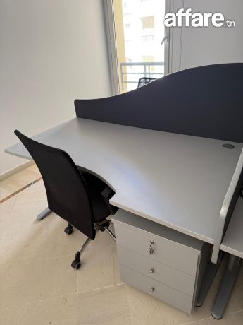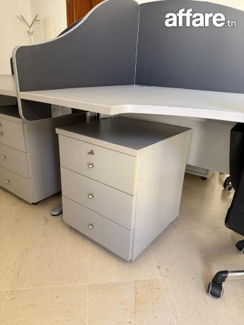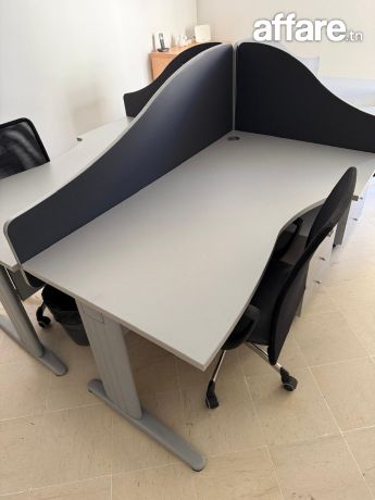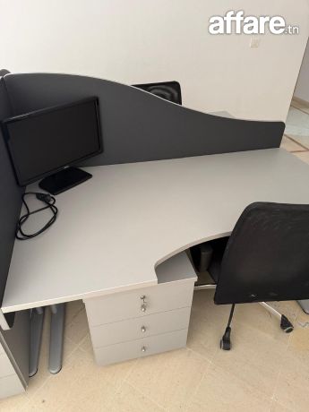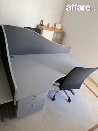 Je mets en vente des meubles de bureau en excellent état, parfaits pour un bureau à domicile ou professionnel. Bureau : gris avec séparation