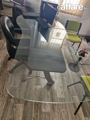 Bureau +table de base +element de rangement+2 chases roulantes +2chaises+rideaux(1250dt)