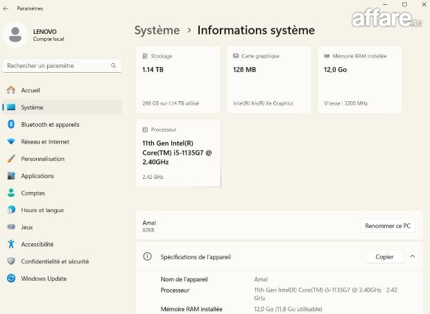 CPU: Intel Core i5-1135G7 11th Gen, 2.40 GHz
