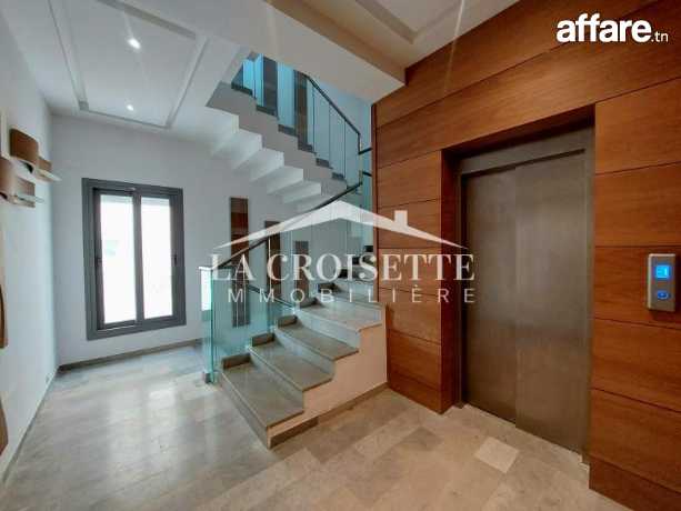 La Croisette Immobilière Tunisie vous propose à la vente un penthouse S+4 avec piscine situé dans une résidence gardée à Gammarth.