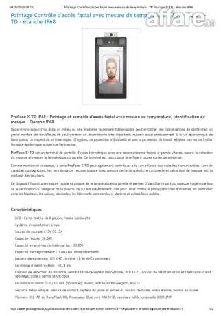 Pointage Contrôle d'accès facial avec mesure de température - ZK ProFace X-TD - étanche IP68