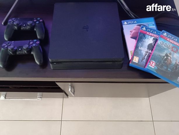 PS4 Slim 500 Go + 2 manettes – Très bon état 3cd including elden ring gta5 fc 25 et d autres jeux