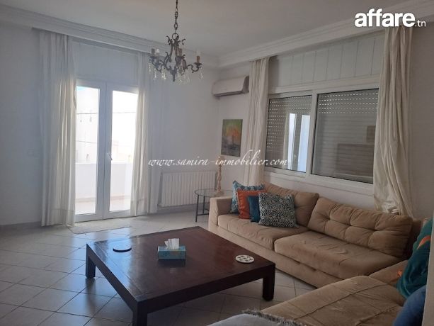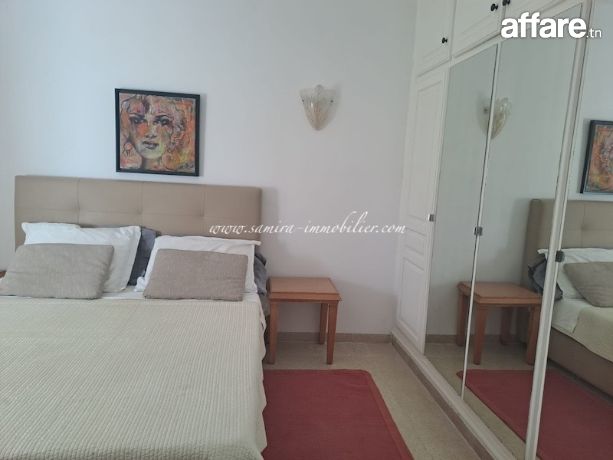 A louer à l’année un appartement meublé de type S+2 situé à Hammamet dans un quartier calme et accessible.