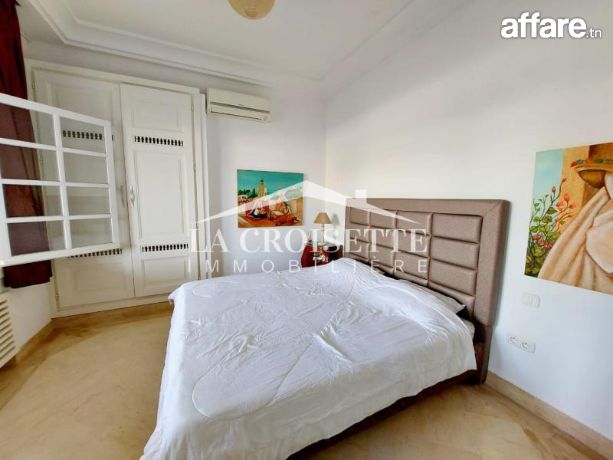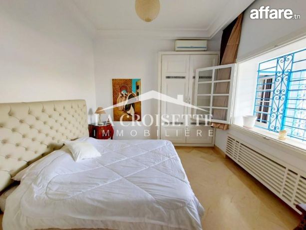 La Croisette immobilière Tunisie vous propose à la location un rez-de-chaussée de villa meublé S+3 avec jardin situé dans un quartier prisé à La Marsa.