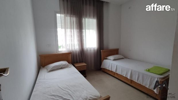 Nous vous proposons à la location estivale un agréable appartement S+2 meublé, situé dans une résidence calme et proche de la plage à AFH² Mrezga.