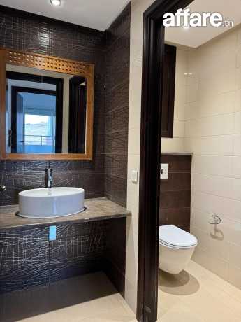 il totalise près de 210 m² de surface vitale. dès l'entrée cet appartement offre un espace ouvert qui se compose d'un salon-salle à manger spacieux et lumineux avec une vu imprenable sur grand tunis, une belle cuisine équipé et une salle d'eau.