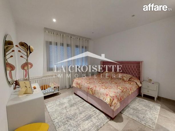 La Croisette immobilière Tunisie vous propose à la location un triplex S+3 vide avec jardin situé dans un quartier résidentiel à La Soukra.