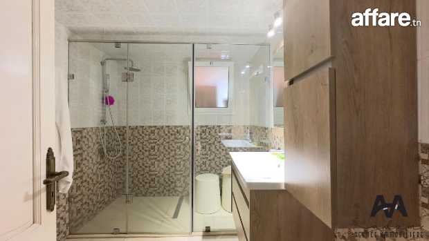 Cet espace lumineux se compose d'un salon bien équipé et d'une salle à manger. Il dispose d'une chambre parentale et une salle d’eau avec douche à l'italienne, d’une chambre d'enfant ,d'une autre chambre et une salle d'eau pour les invités . Un séchoir ainsi qu'une cuisine indépendante aménagée et équipée sont également disponibles.