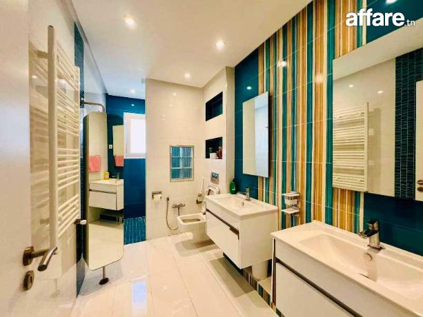 A vendre chez l’agence SMART OWNER immobilière Hammamet, une belle demeure de plain pied avec un style arabesque moderne, bien située à Yasmine Hammamet dans un quartier calme et sécurisé, elle est composé d’un spacieux salon, une cuisine américaine moderne et bien installée, une suite parentale aménagée d’un grand dressing et une salle de bain, deux chambres à coucher avec des dressings et une salle de bain commune. L’entre sol compte un cellier, une chambre de service avec une salle de bain, une loge gardien, un local technique et une place parking. La propriété est équipée de chauffage central et de climatisation et elle dispose d’une belle piscine entourée d’un jardin gazonné et d’une terrasse bien aménagée.
