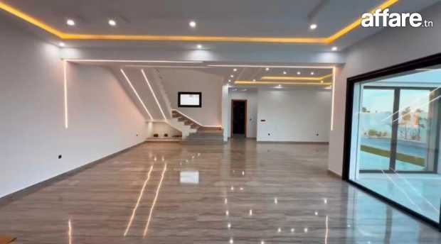 A vendre chez l’agence SMART OWNER immobilière Hammamet, une luxueuse villa de très haut standing nouvellement construite sur un terrain de 800m², située dans un quartier résidentiel bien sécurisé à Hammamet zone El Monchar.