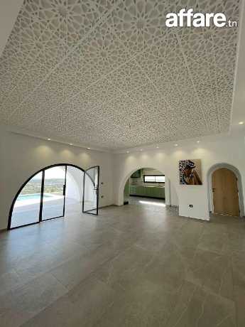 A vendre chez l’agence SMART OWNER immobilière Hammamet, une magnifique villa de plain pied nouvellement construite de style arabesque, avec une belle vue sur mer et montagne située dans un quartier bien sécurisée à Hammamet zone el Monchar.