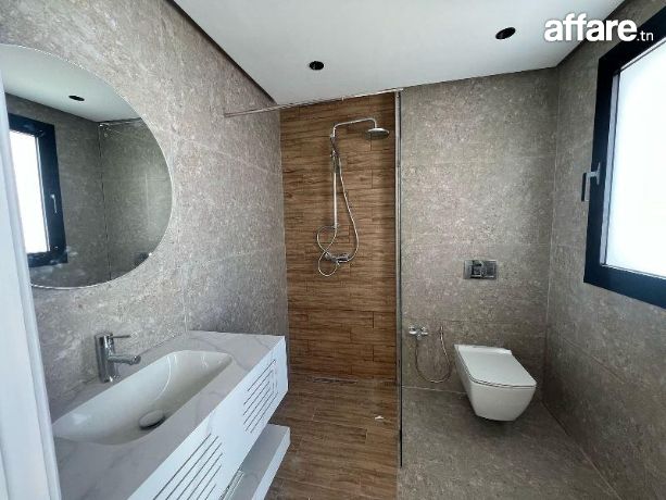 Le rez de chaussée se compose d’un salon, un séjour, une cuisine moderne bien équipée et une salle d’eau d’invités.