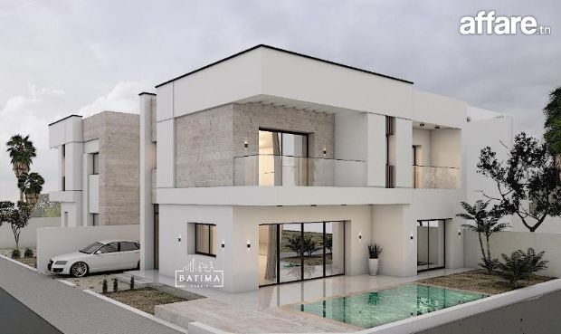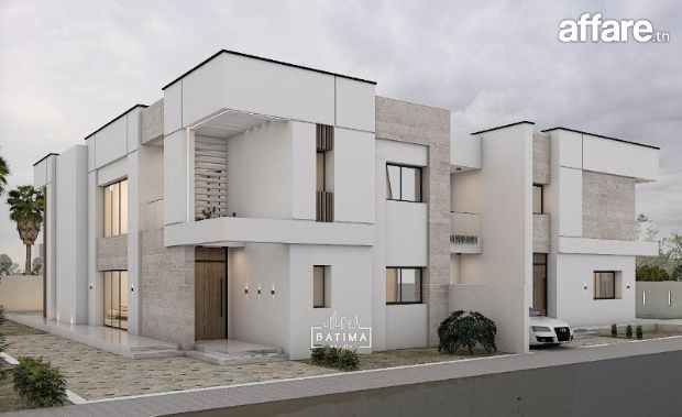 La superficie de la villa A: 218 m² terrain et 220 m² bâtie dont le prix est à 1050.000 DT.
