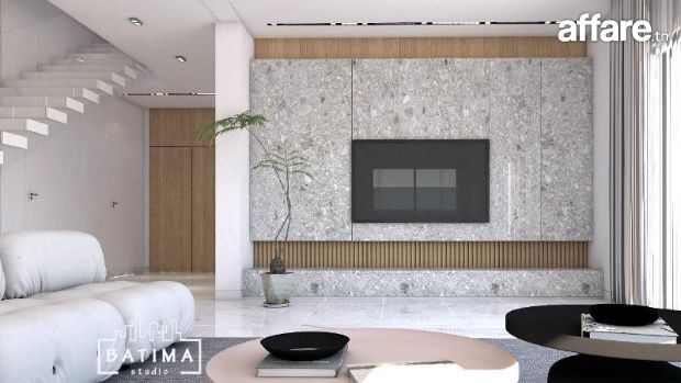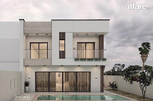 La superficie de la villa B: 350 m² terrain et 305 m² bâtie dont le prix est à 1400.000 DT.