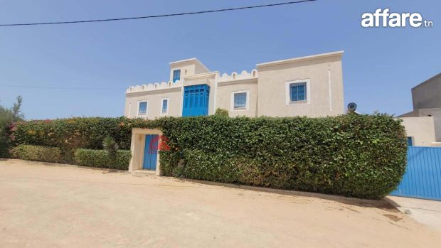 Une belle villa récente construite avec le style local Djerbien sur un lot de terrain de 625 m². Avec titre bleu individuel.