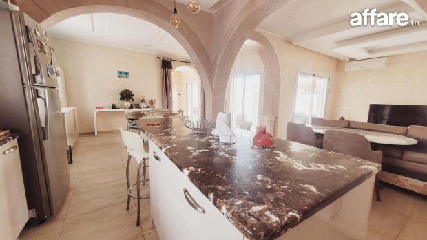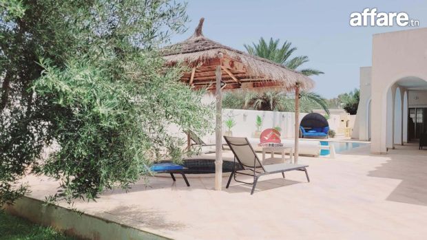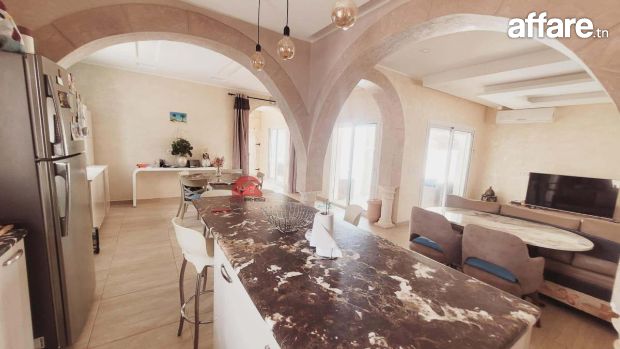 Une belle villa récente construite avec le style local Djerbien sur un lot de terrain de 625 m². Avec titre bleu individuel.