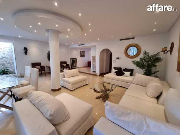 A vendre chez l'agence TPS immobilière Hammamet une belle villa de prestige, d'une surface habitable de 320 m² érigée sur trois niveaux et sur un terrain de 380 m², avec une surprenante vue sur la mer et le golf de Gammarth, située dans un quartier chic et résidentiel de la ville de la Marsa Gammarth.