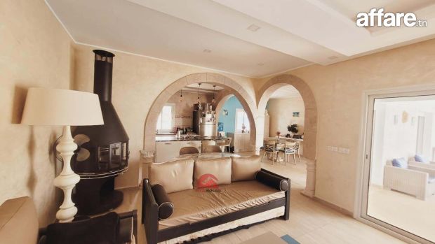 Une belle villa récente construite avec le style local Djerbien sur un lot de terrain de 625 m². Avec titre bleu individuel.