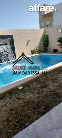 se compose d'une grand salon , 3 chambres à coucher , cuisine moderne meublée , salle de bain , gardin , piscine 7.5 * 4 m² , et un garage équipé de kitchenette et toilette et douche