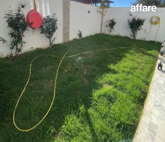 - Le rez-de-chaussée comprend un jardin à l’entrée qui entoure de demeure, un vaste salon lumineux, une salle à manger, un coin séjour arabesque, une terrasse doté d’un accès sur un jardin, une cuisine bien équipée, une salle d’eau.