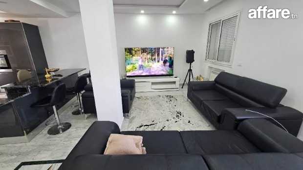 Au premier étage, découvrez un salon spacieux et lumineux, conçu avec des lignes épurées et des finitions modernes, offrant un cadre idéal pour se détendre et recevoir.