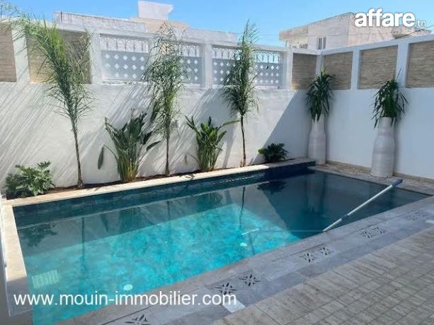 A vendre une villa avec piscine, jumelée d’un coté, récemment construite située à Hammamet – zone théâtre, à 200m de l’avenue principale.