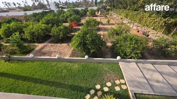 Vis-à-vis immobilier vous propose en vente une offre exceptionnelle sur le marché immobilier à Djerba : Une villa de plain pied de 580 m² de surface couverte implanté sur un beau terrain clôturé de 14.000 m² avec titre bleu