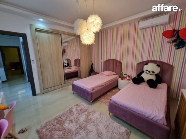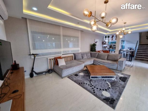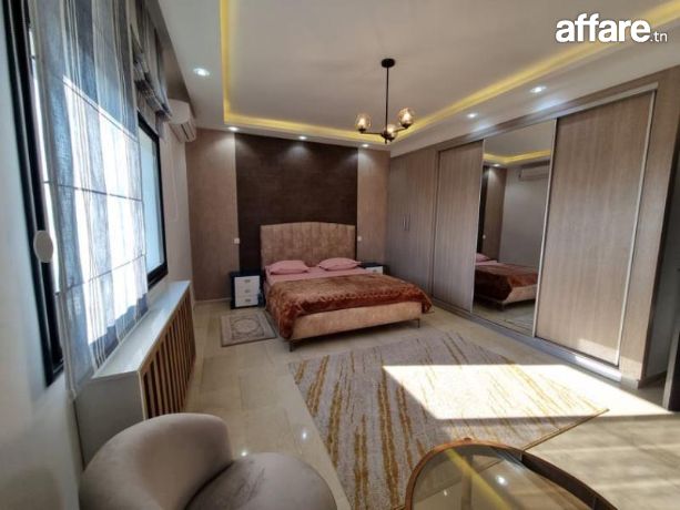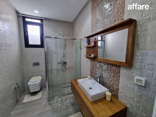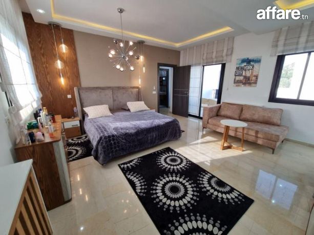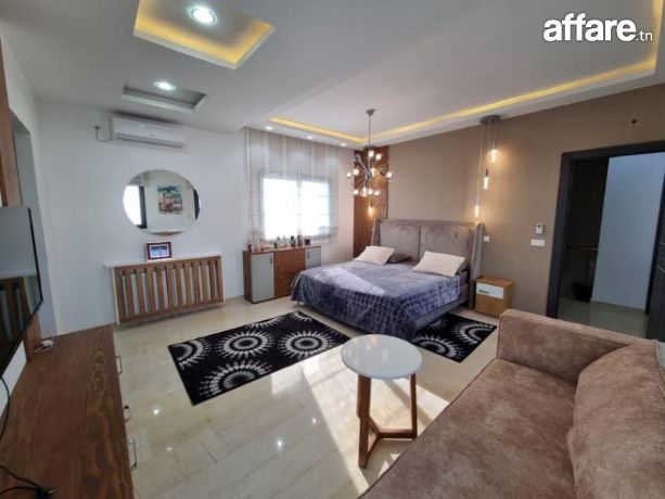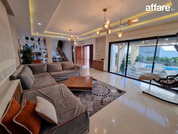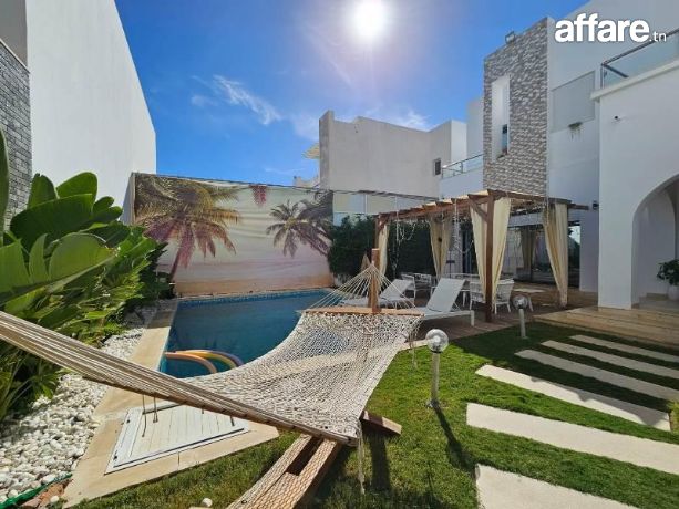 A louer pendant la période estivale chez l’agence TPS Immobilière, une magnifique villa meublée toute neuve avec piscine, bien située à l’entrée d’Hammamet.La villa est composée au rez de chaussée d’un salon qui donne sur la piscine et le jardin, une chambre à coucher, une grande cuisine aménagée ouverte sur le salon et une salle d’eau pour les invités.Quant à l’étage, il comporte une suite parentale avec sa propre salle de bain et dressing ainsi qu’avec double terrasse, aussi on trouve deux belles chambres à coucher et une salle de bain commune avec une douche.A l’exterieur, vous bénéficiez d’une belle piscine, un jardin gazonné, une belle terrasse aménagée, une douche, un coin barbecue et une place de parking avec portail électrique.La villa est équipée par des climatiseurs et caméras de surveillance.Prix de location par semaine: 5110 DT.Pour plus d'informations, veuillez SVP contacter Mme Emna aux : 00216 28.605.016 / 00216 52.631.000.