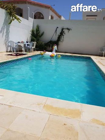 À louer pour les vacances chez l'agence TPS immobilière une magnifique villa située dans la zone Sultane de Hammamet près de l'hôtel renommé La Badira.À l'extérieur, cette villa dispose d'une piscine rafraîchissante entourée d'un jardin gazonné, parfait pour se détendre et profiter du soleil.Le sous-sol de la villa comprend une cave.Au rez-de-chaussée, vous trouverez un grand salon lumineux qui donne directement sur la piscine, offrant une vue imprenable et un accès facile pour les baignades estivales.Il y a également une SDD et une cuisine américaine entièrement équipée, parfaite pour préparer de délicieux repas en famille ou entre amis.Au premier étage, la villa comprend deux chambres confortables, une SDB commune, et une suite parentale spacieuse.Une terrasse à cet étage offre également une vue magnifique sur la piscine, créant un espace idéal pour se détendre en soirée.Cette villa est parfaite pour des vacances relaxantes et inoubliables à Hammamet.