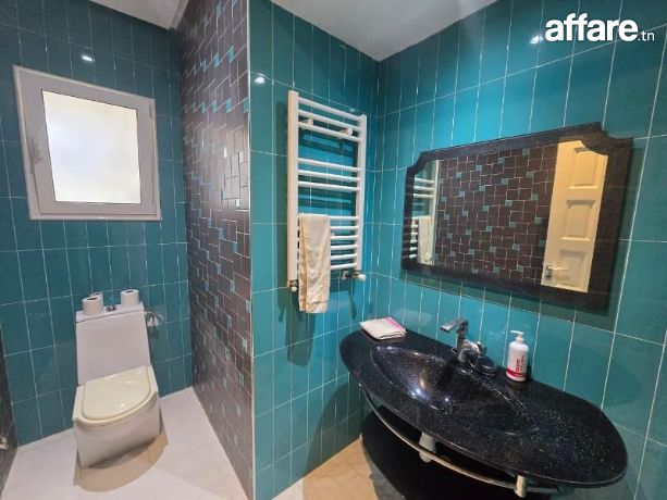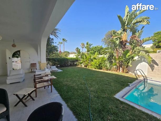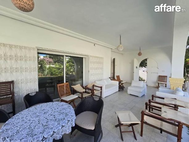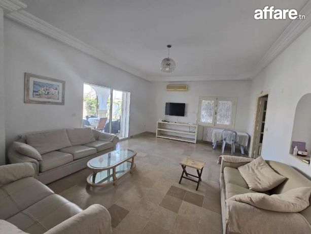 TPS immobilière vous propose pour la location estivale ce rez-de-chaussée de villa indépendante bien située à Sidi Mahressi Nabeul.Nichée dans un quartier paisible et recherché, cette villa offre un cadre parfait pour se détendre et profiter de moments en famille ou entre amis.À l'extérieur, vous serez enchanté par une piscine privée entourée d'un jardin gazonné, parfait pour les baignades rafraîchissantes et les bains de soleil.La terrasse attenante au salon offre une vue imprenable sur le jardin, un endroit idéal pour savourer vos repas en plein air ou simplement vous relaxer.À l'intérieur, la villa se compose d'un spacieux salon lumineux, propice à la détente et à la convivialité.La cuisine est entièrement équipée, prête à accueillir vos talents culinaires.Cette demeure comprend trois chambres à coucher confortables, idéales pour accueillir jusqu'à six personnes.Vous y trouverez également une SDE et une SDD pour plus de commodité.La villa est équipée de la climatisation pour garantir votre confort pendant les chaudes journées estivales.