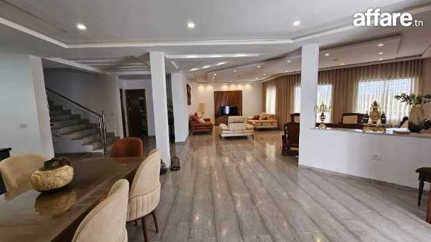 Notre villa est érigée sur 2 niveaux, au rez-de-chaussée vous trouverez une belle entrée, un double salon très lumineux, une cuisine à l’américaine qui est bien équipée, une deuxième cuisine à votre disposition, aussi une vaste chambre à coucher et une SDB visiteurs.