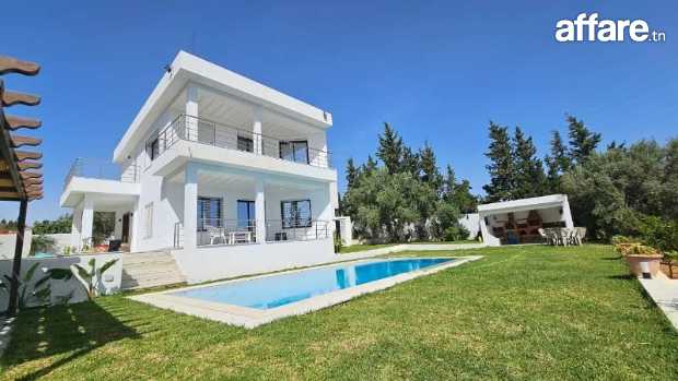 Notre agence TPS Immobilière met à votre disposition pour la location annuelle une magnifique demeure de luxe, niché dans un cadre verdoyant, cette belle villa est agréablement agencée pour des séjours reposants dans un environnement de qualité en pleine nature, ainsi vous apprécierez son agréable terrasse surplombant un jardin arboré clos avec une large vue dégagée sur la campagne et dont vous êtes seulement à 5 km de toutes les commodités d’Hammamet.