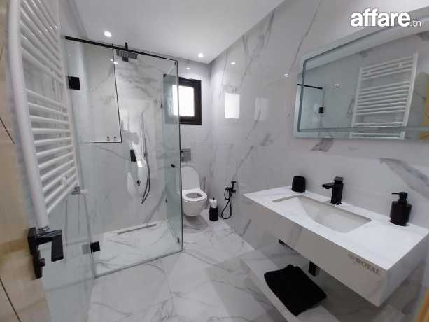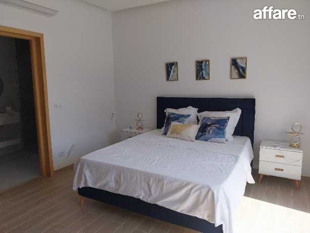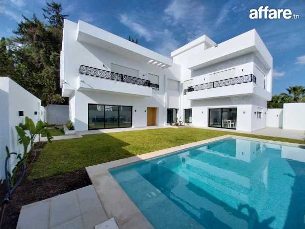 La villa est équipée de la climatisation, elle dispose d’un parking et d’une belle piscine entourée d’un jardin gazonné, le tout à proximité des commodités.Pour plus d'informations, veuillez SVP contacter Mme Emna aux : 00216 28.605.016 / 00216 52.631.000.