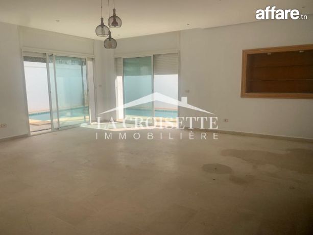 La Croisette Immobilière Tunisie vous propose à la location une villa S+3 avec piscine située dans un quartier résidentiel à Ain Zaghouan Nord.