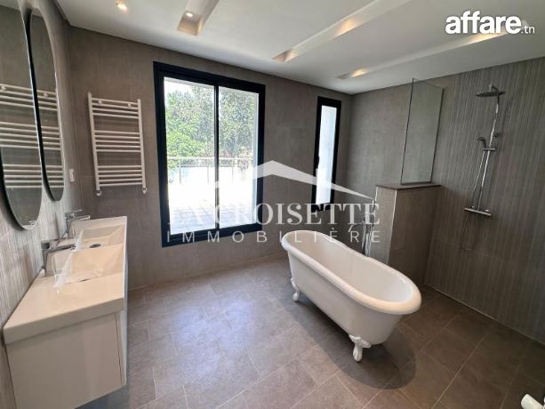 La Croisette Immobilière Tunisie vous propose à la location une villa S+4 avec piscine située dans un quartier résidentiel à La Soukra.